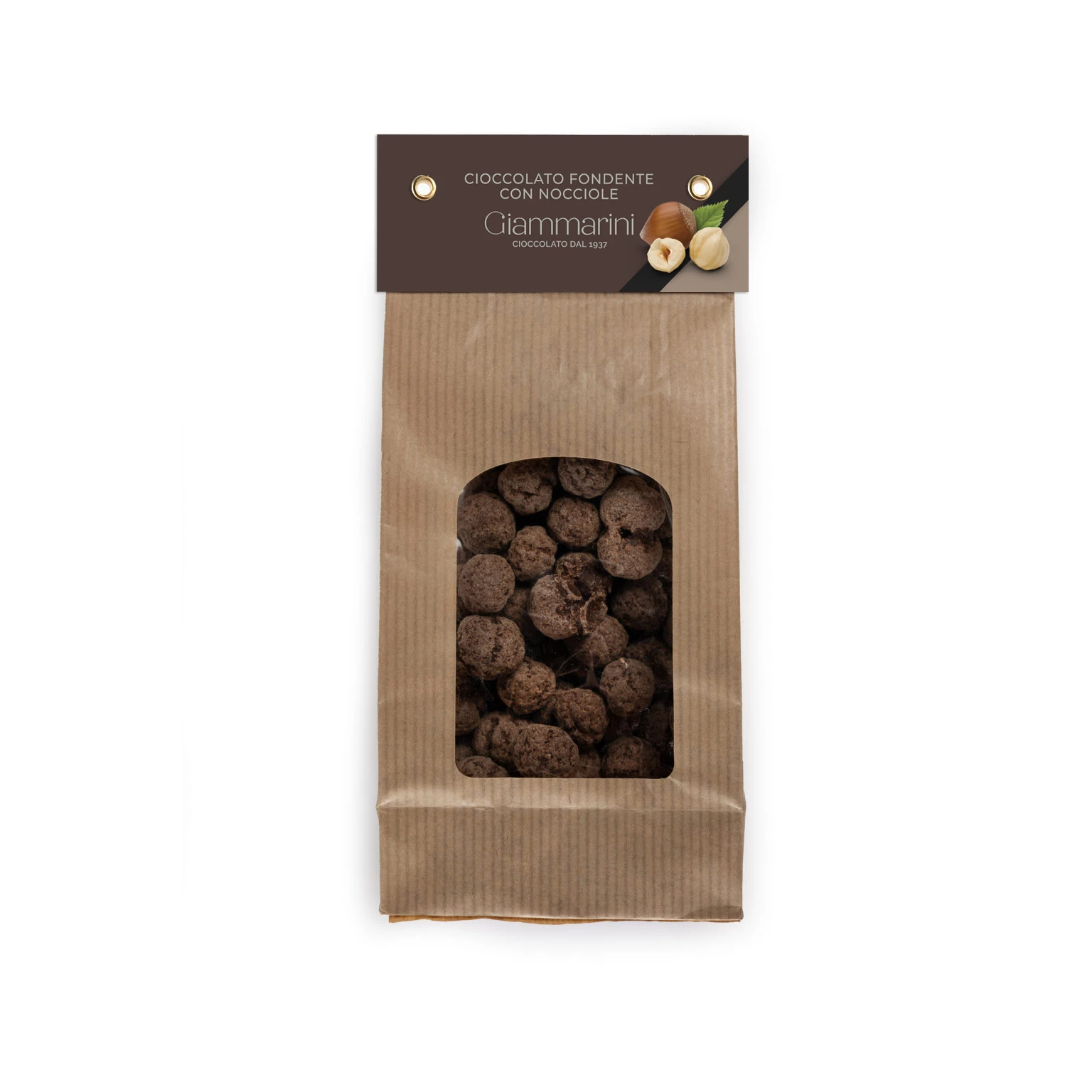 Cioccolato fondente in pezzi con nocciole in sacchetto